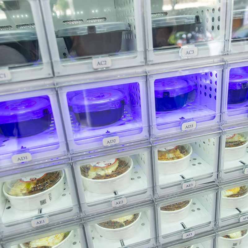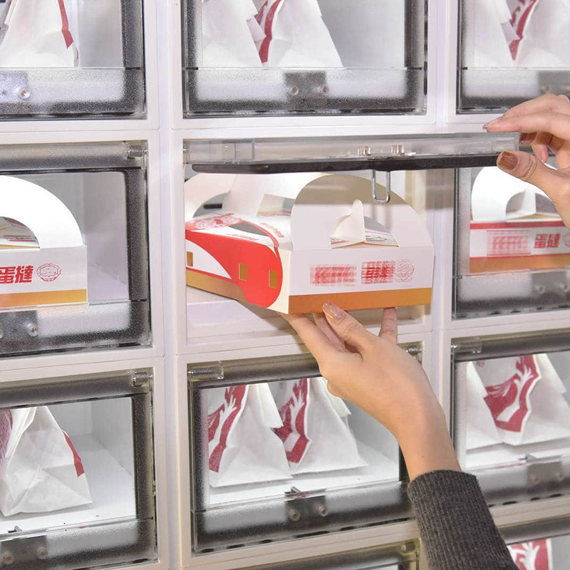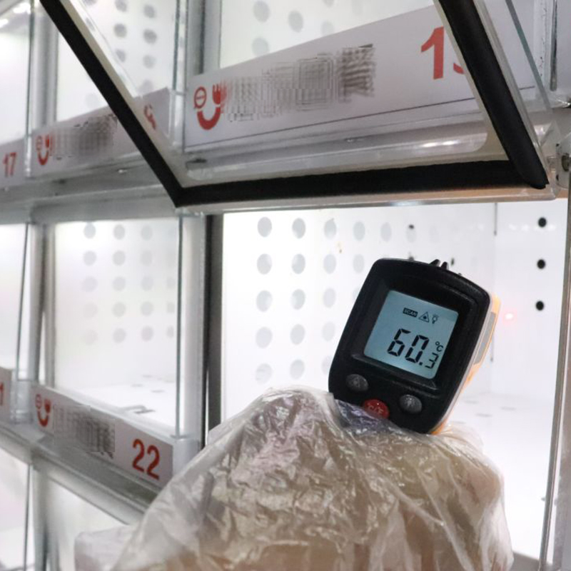 产品型号:EV7871-36格加热型盒饭售货机|取餐柜,适卖商品:盒饭、汉堡、早餐等密封包装可加热的食品。