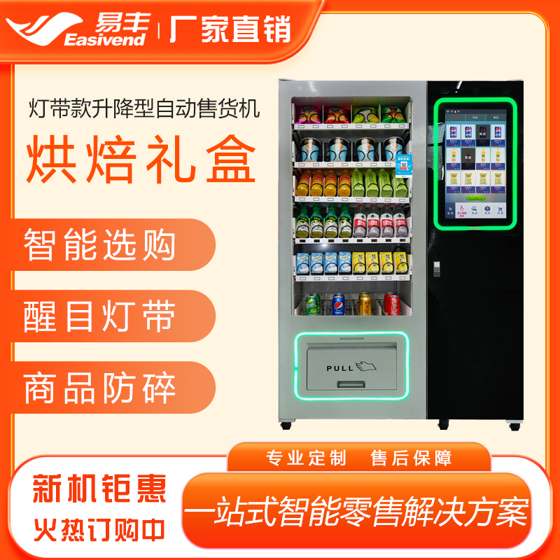 全新创意灯带款升降式自动售货机 商品防摔防碎 支持售卖各式乳品烘焙、礼盒商品、预制生鲜食品等